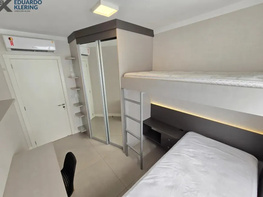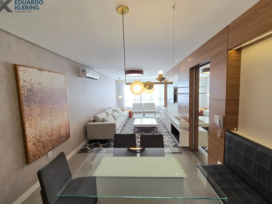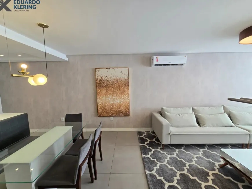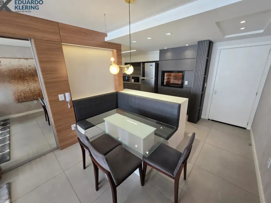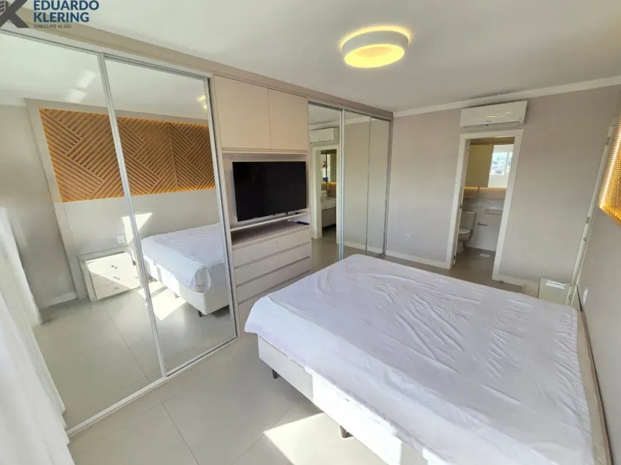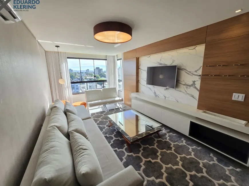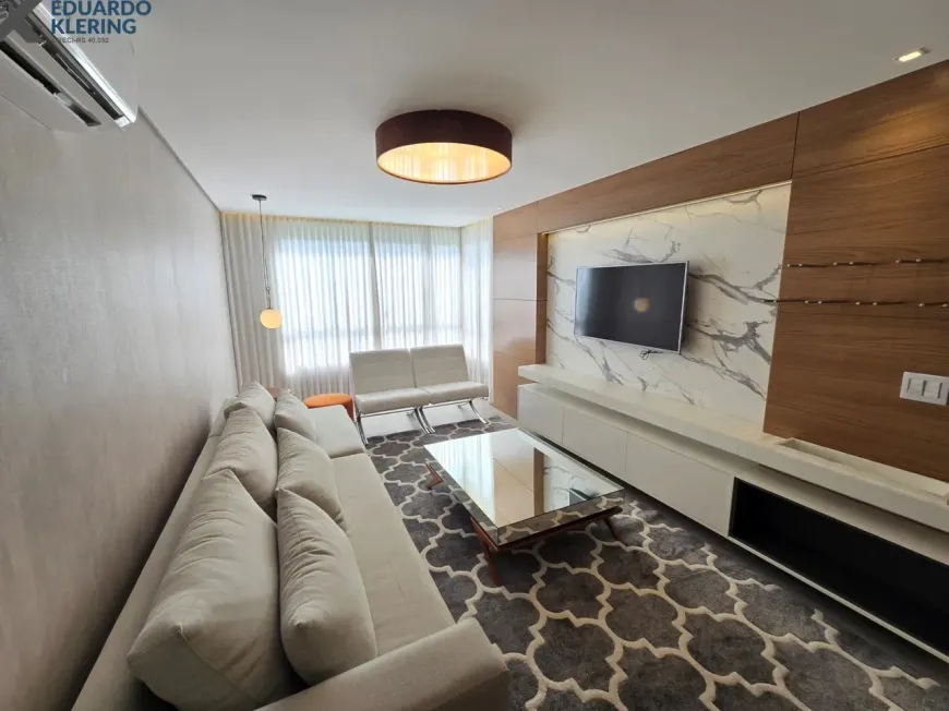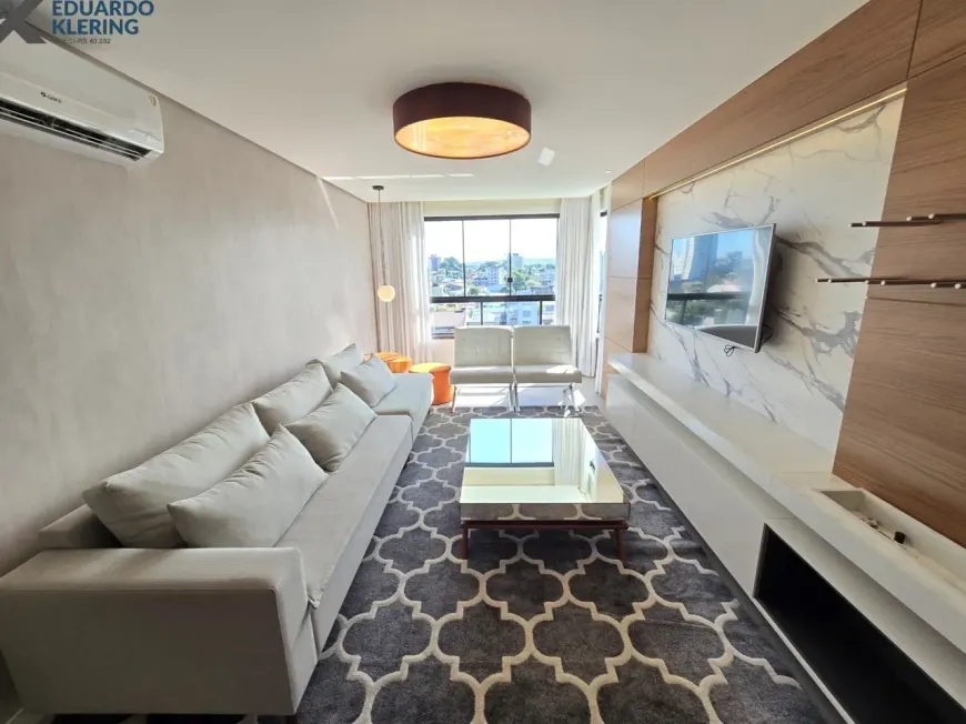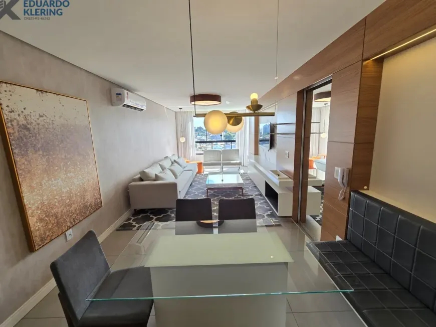 NOVIDADE EXCLUSIVA! Excelente oportunidade de moradia neste amplo, lindo, moderno e confortável apartamento de alto padrão, totalmente mobiliado e equipado, pronto para morar, com 2 dormitórios (1 suíte), 2 banheiros, 7° andar, orientação solar privilegiada (norte/leste), sacada integrada e fechada com vidros temperados, cozinha com bancada e churrasqueira (dutos individualizados), área de serviço integrada, linda vista arborizada e maravilhosa ventilação natural, living amplo com 2 ambientes e canto alemão, 97,05m² privados, 129,17m² total, 2 vagas de garagem, piso porcelanato em todos ambientes, materiais de primeira qualidade, gesso decorado, portas em madeira nobre com acabamento em laca, esquadrias externas em PVC com perfil alemão e excelente conforto térmico e acústico, persianas com controle remoto nos dormitórios, medidores individuais, ambientes climatizados, laje técnica, gás central, água quente, acabamento premium. Esta é a oportunidade perfeita para você que busca um apartamento espaçoso, pronto para morar, bem ventilado e com excelente orientação solar, que deseja deixar os carros na garagem e fazer tudo a pé, pois a localização é muito privilegiada no coração da cidade, além de contemplar um maravilhoso pôr do sol e curtir um churrasquinho gostoso em família! É muita qualidade de vida com praticidade, conforto, lazer, segurança e conveniência!