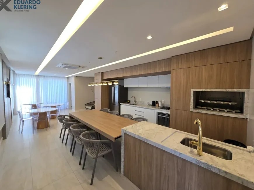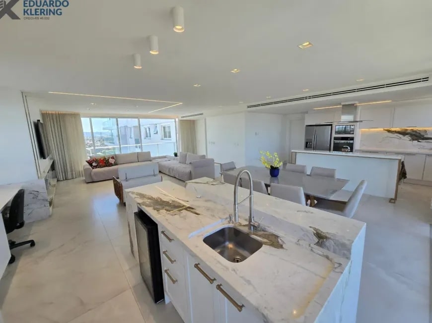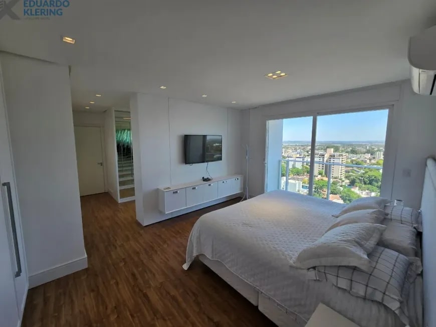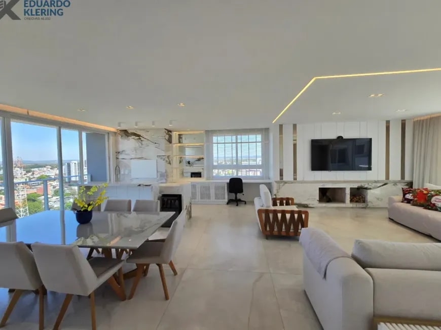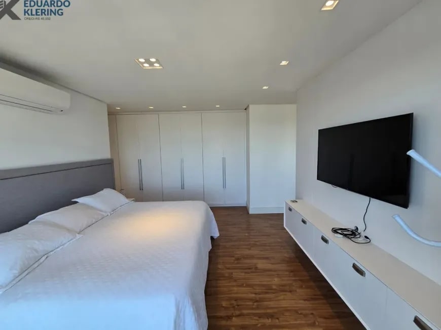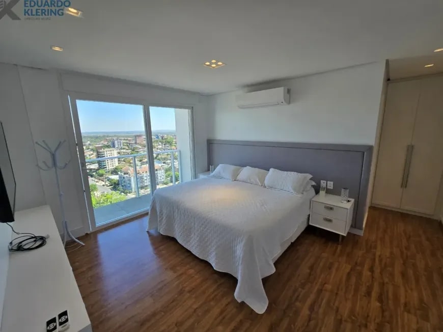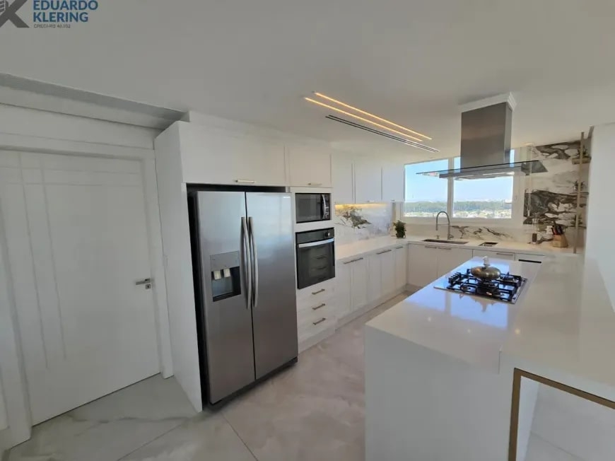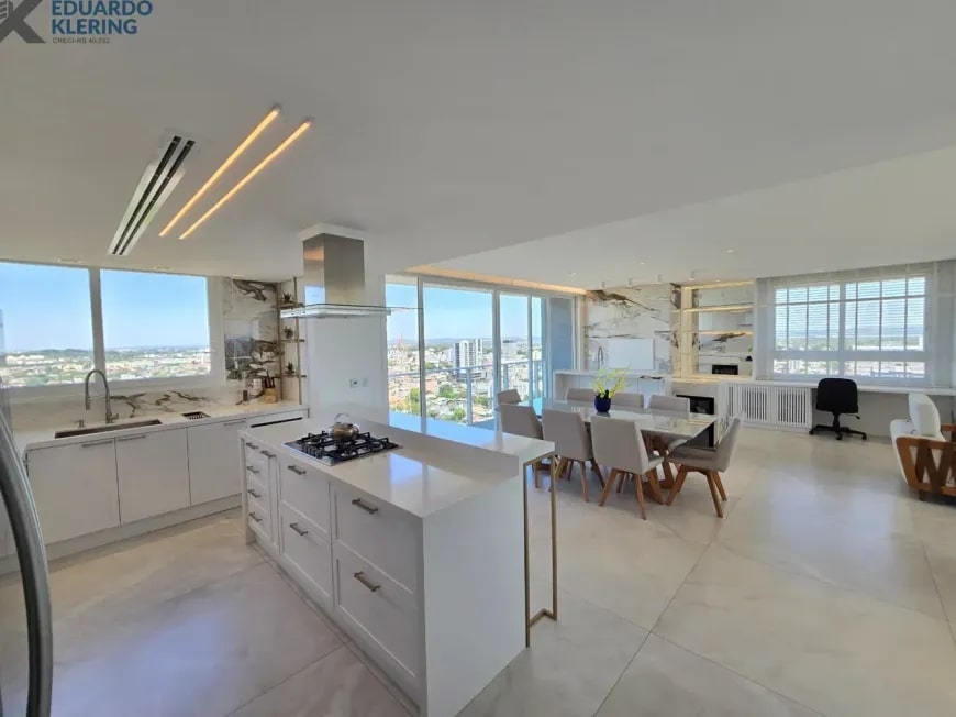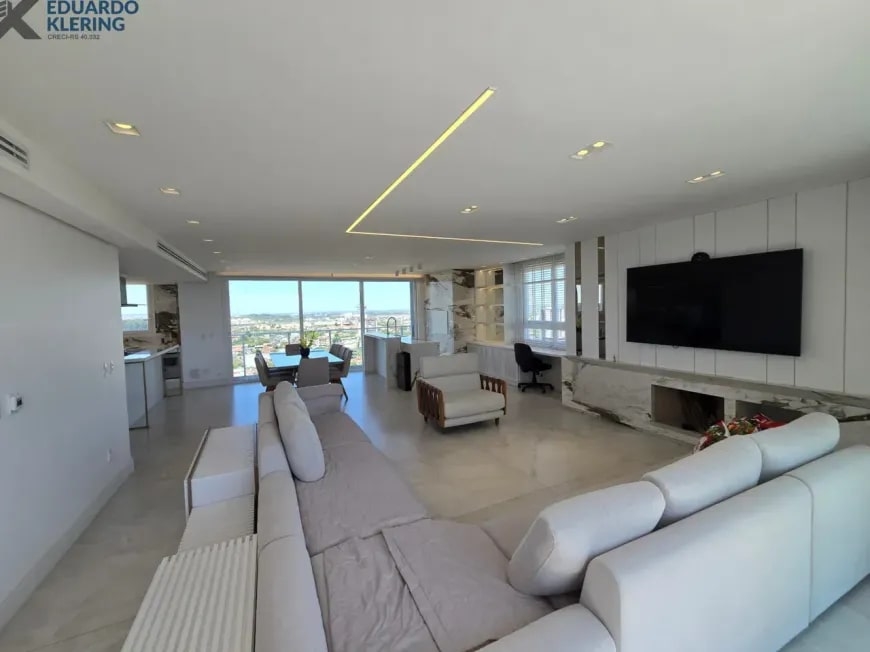 NOVIDADE! Extraordinária oportunidade de moradia neste amplo, lindo e exclusivo apartamento “padrão luxo” semimobiliado e equipado, com 3 suítes (principal com mais de 30m², closet, sacada e “espera” para hidromassagem), 4 banheiros e 1 lavabo (banho suíte com cuba dupla esculpida em pedra), 241,71m² privados, 362,54m² total, 16º andar, frente, orientação solar privilegiada (norte), linda vista arborizada de 270° e com maravilhoso pôr do sol, sacadas abertas, living amplo de quase 90m² com churrasqueira à carvão, lareira à lenha e muita iluminação natural, gostosa ventilação cruzada, cozinha em ilha e área de serviço independentes, depósito, sistema de climatização central, 4 vagas de garagem independentes (lado a lado) com depósito, revestimentos Classe A, materiais de primeira qualidade, piso porcelanato 120x120 nas áreas úmidas e sala (cozinha, área de serviço, depósito, banheiros e lavabo), piso laminado nos dormitórios e corredor, esquadrias da marca Weiku em PVC com perfil alemão e excelente conforto térmico e acústico, persianas com controle remoto nos dormitórios, medidores individuais, gás central, água quente, acabamento premium, laje plana maciça com alto desempenho acústico, entrada social com hall privativo. Imóvel quitado e regularizado, aceita financiamento. Essa é a oportunidade perfeita para quem privilegia espaço e privacidade, num imóvel de altíssimo padrão, onde você vai poder curtir um pôr do sol incrível no final de tarde, contemplar uma vista maravilhosa, num ambiente exclusivo, silencioso e bem ventilado. Aqui, com certeza, você também vai poder fazer um churrasquinho gostoso em família, degustar um bom vinho curtindo o aconchego da lareira acesa e compartilhar os bons momentos que a vida nos proporciona. É muita qualidade de vida com praticidade, conforto, lazer e segurança!