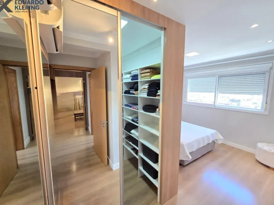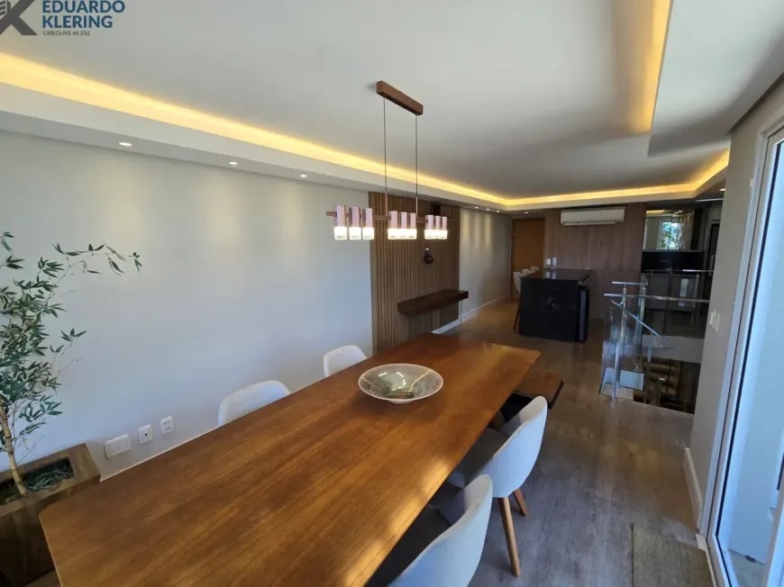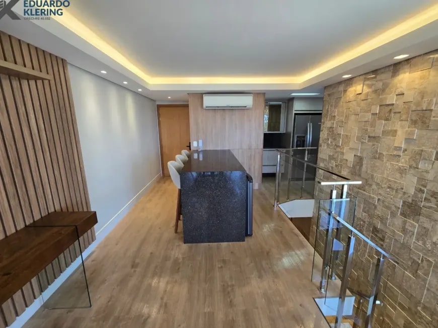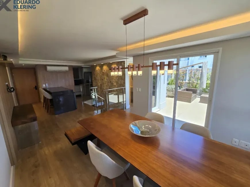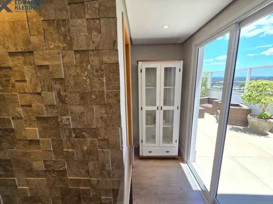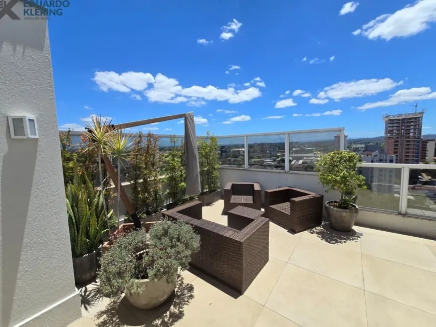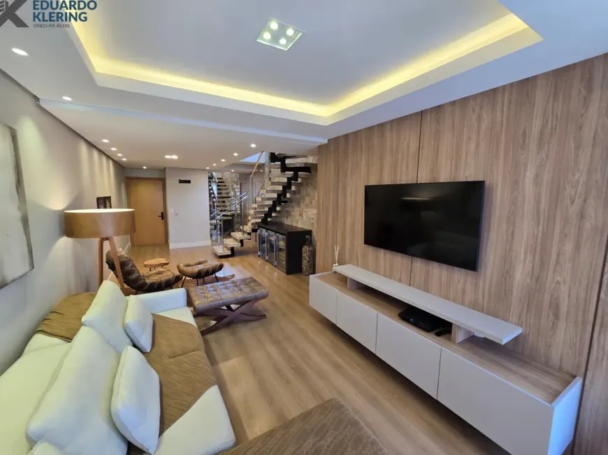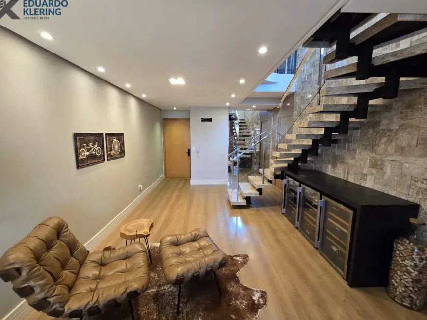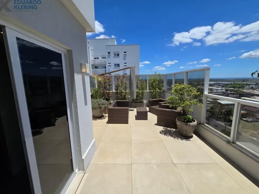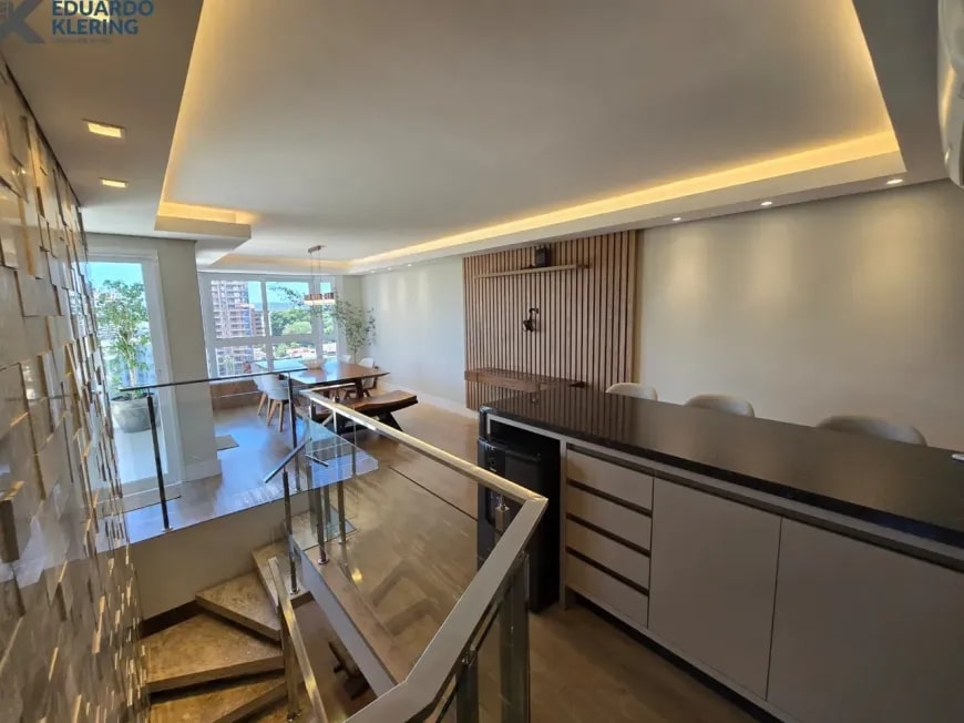 NOVIDADE! Excelente oportunidade de moradia nesta ampla, linda e confortável cobertura semimobiliada e equipada, pronta para morar, com 2 dormitórios (1 suíte com closet), 3 banheiros, 172,24m² privados, 218,30m² total, home office, sapateira, orientação solar privilegiada (norte/oeste), linda vista arborizada com pôr do sol maravilhoso, gostosa ventilação cruzada, 2 vagas de garagem, amplo estar íntimo no penúltimo andar, com escada em granito e corrimãos de inox, área social e gourmet com churrasqueira no último andar, terraço com espaço aberto e “espera” para jacuzzi, cozinha e área de serviço independentes, pisos porcelanato, laminado e vinílico, materiais e revestimentos de primeira qualidade, portas em madeira nobre, janelas em alumínio com ótimo conforto térmico e acústico, gesso decorado com sanca, medidores individuais, gás central, água quente, ambientes climatizados e com ótima iluminação natural, acabamento premium. Imóvel quitado, escriturado e regularizado, aceita financiamento. Esta é a oportunidade perfeita para você que deseja o espaço e a privacidade de morar em casa, mas com a segurança e a praticidade de morar em condomínio. Um imóvel extremamente silencioso e bem arejado, onde você pode tomar um chimarrão e curtir um pôr do sol incrível no final de tarde, contemplar uma linda vista num dos pontos mais altos da cidade, além de fazer um churrasquinho gostoso em família! Aqui, você vai compartilhar bons momentos com a sua família, com muita qualidade de vida!