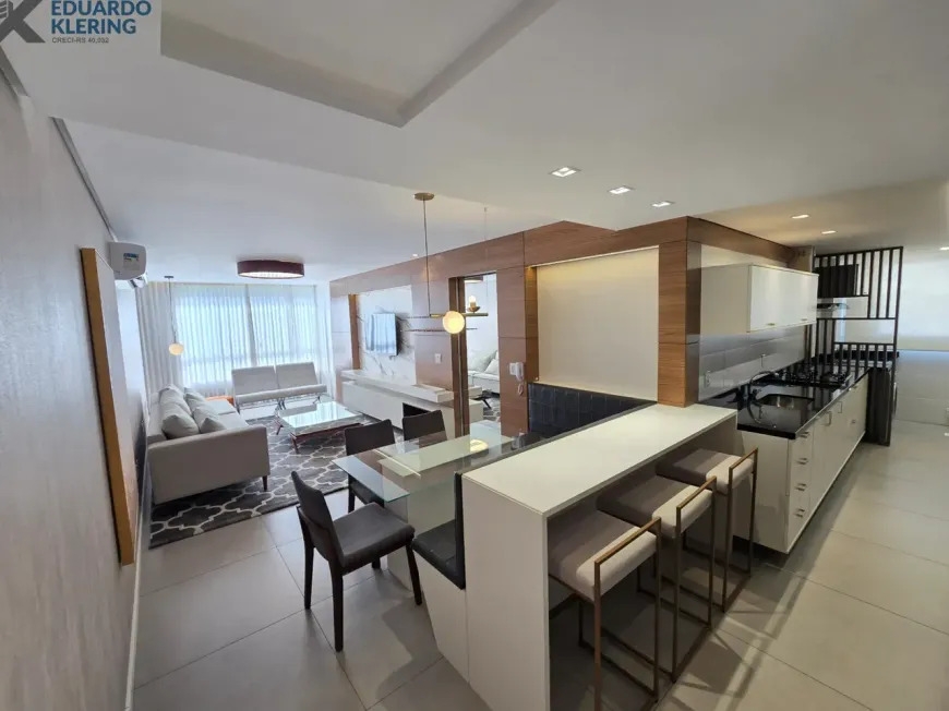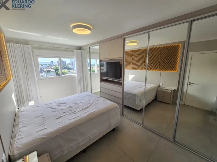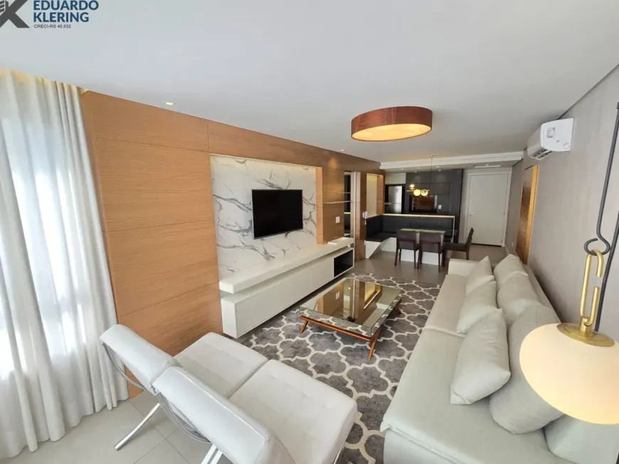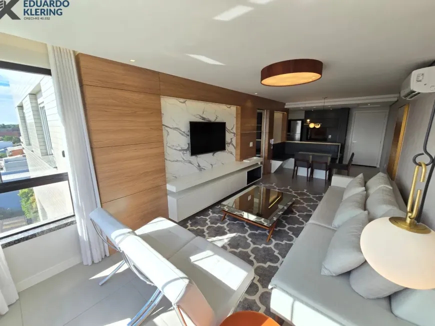 NOVIDADE EXCLUSIVA! Excelente oportunidade de moradia neste amplo, lindo, moderno e confortável apartamento de alto padrão, totalmente mobiliado e equipado, pronto para morar, com 2 dormitórios (1 suíte), 2 banheiros, 7° andar, orientação solar privilegiada (norte/leste), sacada integrada e fechada com vidros temperados, cozinha com bancada e churrasqueira (dutos individualizados), área de serviço integrada, linda vista arborizada e maravilhosa ventilação natural, living amplo com 2 ambientes e canto alemão, 97,05m² privados, 129,17m² total, 2 vagas de garagem, piso porcelanato em todos ambientes, materiais de primeira qualidade, gesso decorado, portas em madeira nobre com acabamento em laca, esquadrias externas em PVC com perfil alemão e excelente conforto térmico e acústico, persianas com controle remoto nos dormitórios, medidores individuais, ambientes climatizados, laje técnica, gás central, água quente, acabamento premium. Esta é a oportunidade perfeita para você que busca um apartamento espaçoso, pronto para morar, bem ventilado e com excelente orientação solar, que deseja deixar os carros na garagem e fazer tudo a pé, pois a localização é muito privilegiada no coração da cidade, além de contemplar um maravilhoso pôr do sol e curtir um churrasquinho gostoso em família! É muita qualidade de vida com praticidade, conforto, lazer, segurança e conveniência!