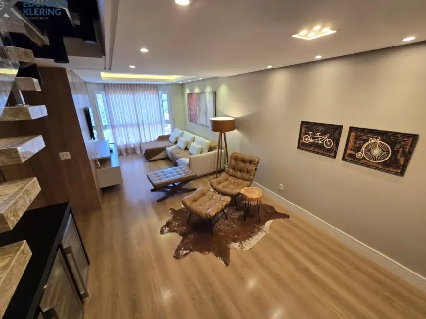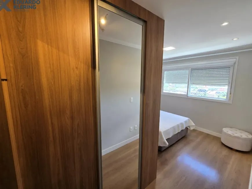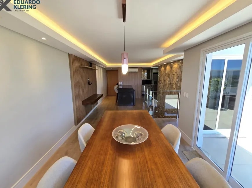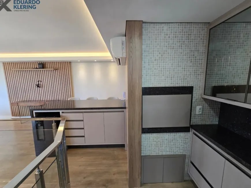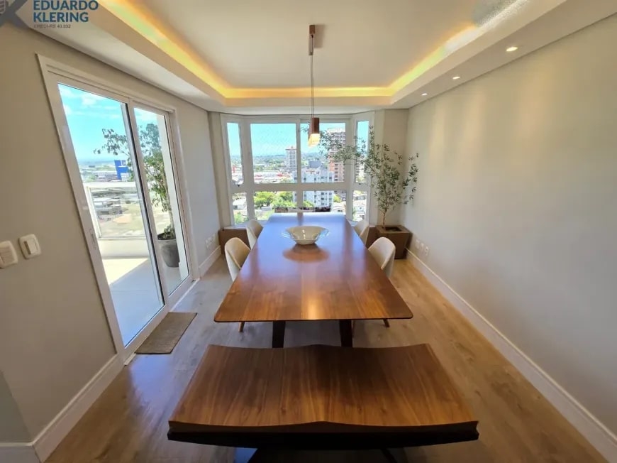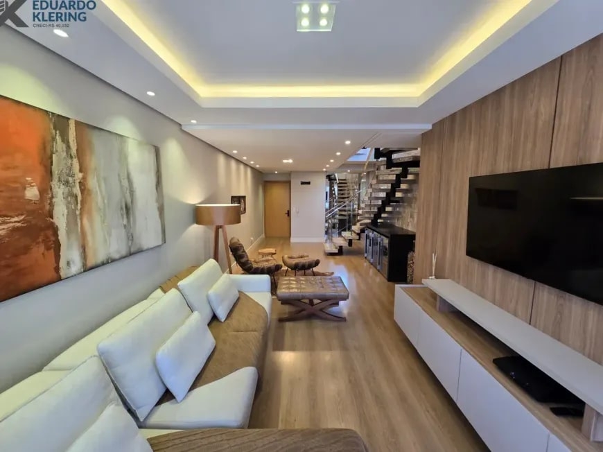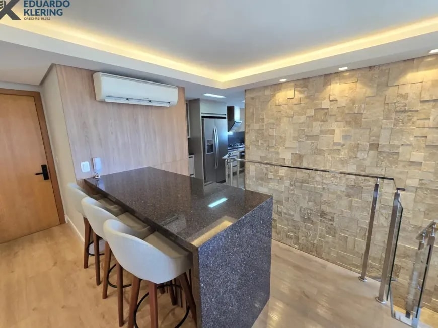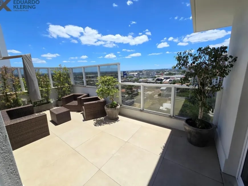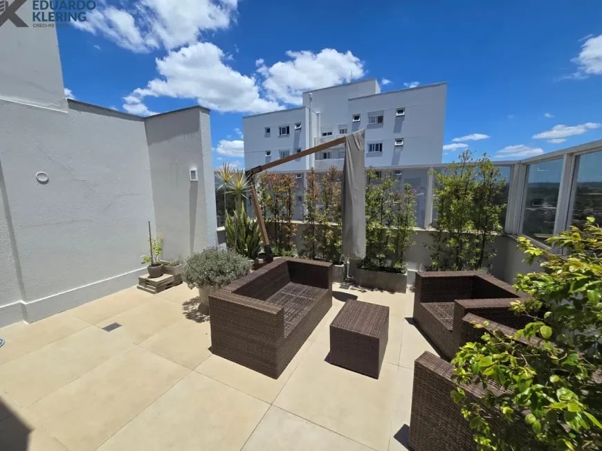 NOVIDADE! Excelente oportunidade de moradia nesta ampla, linda e confortável cobertura semimobiliada e equipada, pronta para morar, com 2 dormitórios (1 suíte com closet), 3 banheiros, 172,24m² privados, 218,30m² total, home office, sapateira, orientação solar privilegiada (norte/oeste), linda vista arborizada com pôr do sol maravilhoso, gostosa ventilação cruzada, 2 vagas de garagem, amplo estar íntimo no penúltimo andar, com escada em granito e corrimãos de inox, área social e gourmet com churrasqueira no último andar, terraço com espaço aberto e “espera” para jacuzzi, cozinha e área de serviço independentes, pisos porcelanato, laminado e vinílico, materiais e revestimentos de primeira qualidade, portas em madeira nobre, janelas em alumínio com ótimo conforto térmico e acústico, gesso decorado com sanca, medidores individuais, gás central, água quente, ambientes climatizados e com ótima iluminação natural, acabamento premium. Imóvel quitado, escriturado e regularizado, aceita financiamento. Esta é a oportunidade perfeita para você que deseja o espaço e a privacidade de morar em casa, mas com a segurança e a praticidade de morar em condomínio. Um imóvel extremamente silencioso e bem arejado, onde você pode tomar um chimarrão e curtir um pôr do sol incrível no final de tarde, contemplar uma linda vista num dos pontos mais altos da cidade, além de fazer um churrasquinho gostoso em família! Aqui, você vai compartilhar bons momentos com a sua família, com muita qualidade de vida!